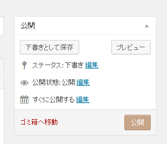④ページ編集画面の右にある「公開」ボタンをクリックすると、固定ページが公開される。「プレビュー」ボタンを押すと、公開前にレイアウトなどを確認できる。
