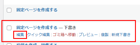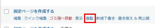 ②下に「下書き」と付いた固定ページが複製されるので、カーソルを合わせ、「複製」という項目があるのでクリックして、内容を書き換える。